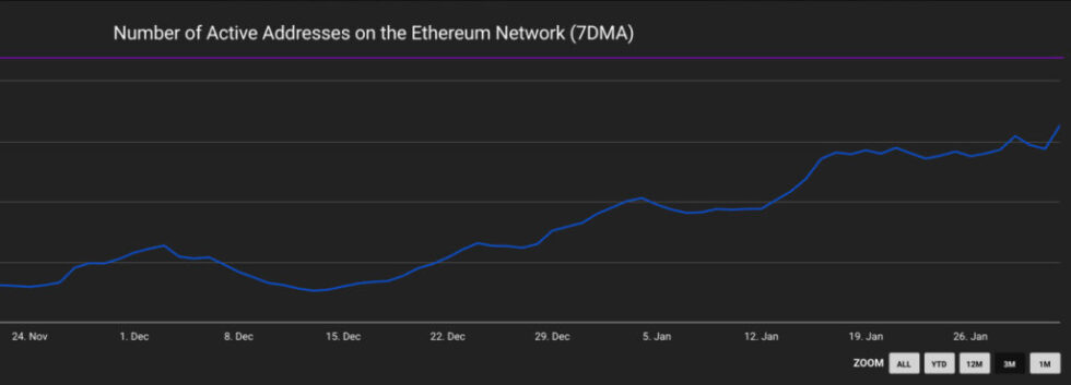 (Source: Number of Active Addresses on the Ethereum Network / The Block)
