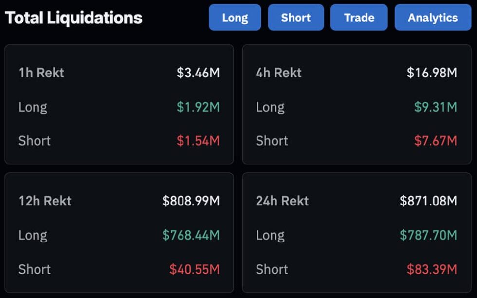 BTC hovered just under $97,000 prior to the press conference, but Trump’s remarks on the Fed chair, coupled with the President imposing tariffs on a number of European countries, sparked a sizeable pullback across crypto, resulting in nearly $900M in liquidations.