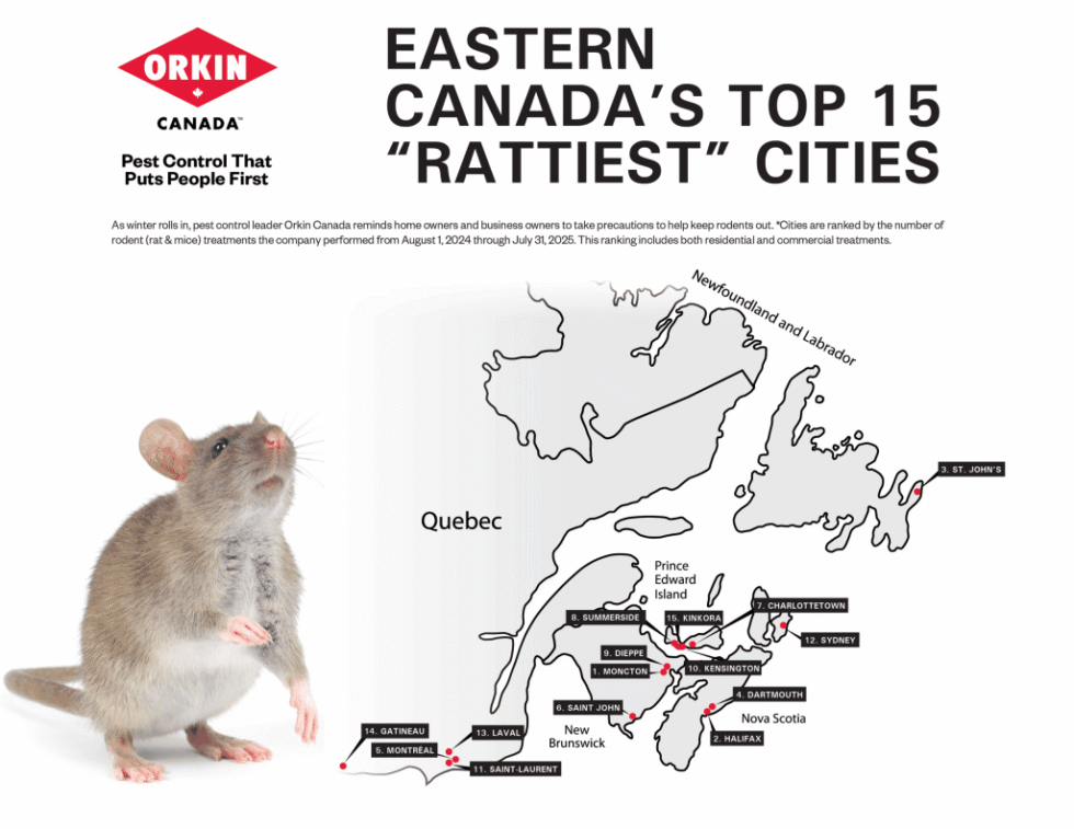 Two portions of Halifax Regional Municipality once again scurried to the top on Orkin Canada’s annual list of eastern Canada’s “rattiest” cities.